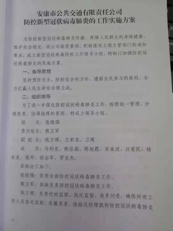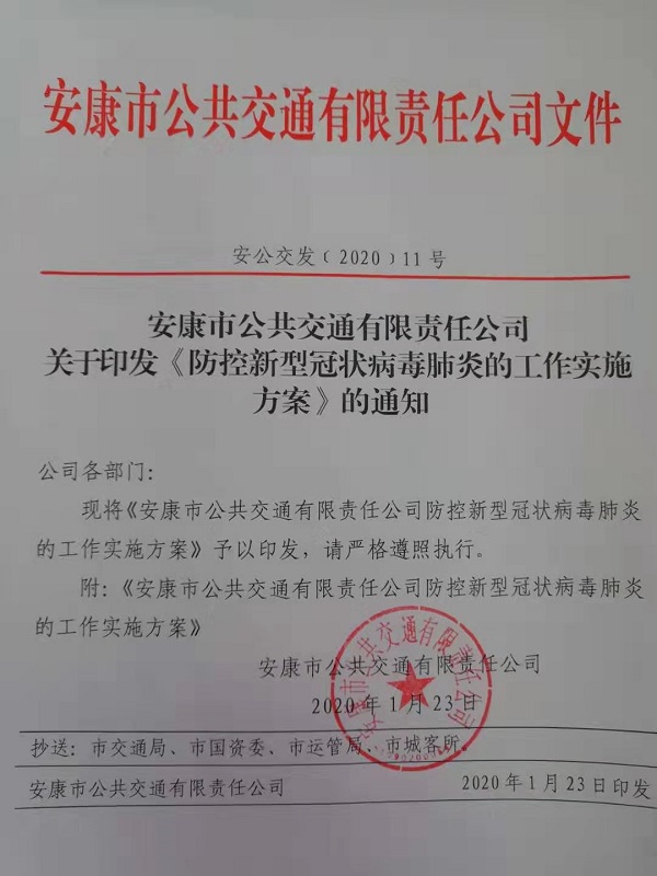 在節(jié)日前夕,公司召開疫情防控工作緊急部署會,成立新型冠狀病毒肺炎防控工作領(lǐng)導(dǎo)小組,部署防控疫情工作,要求各部門要本著“嚴(yán)密防控疫情、確保春運(yùn)安全”的工作思路,全力以赴做好防控工作,發(fā)現(xiàn)問題第一時(shí)間上報(bào),保證公交乘車環(huán)境安全。