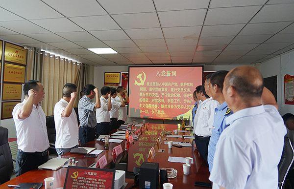當(dāng)天,全體黨員舉起右手,握緊拳頭,重溫入黨誓詞,“我志愿加入中國(guó)共產(chǎn)黨,擁護(hù)黨的綱領(lǐng),遵守黨的章程,履行黨員義務(wù)......”深刻感悟誓詞的力量,時(shí)刻提醒自己不忘共產(chǎn)黨人的初心和使命。