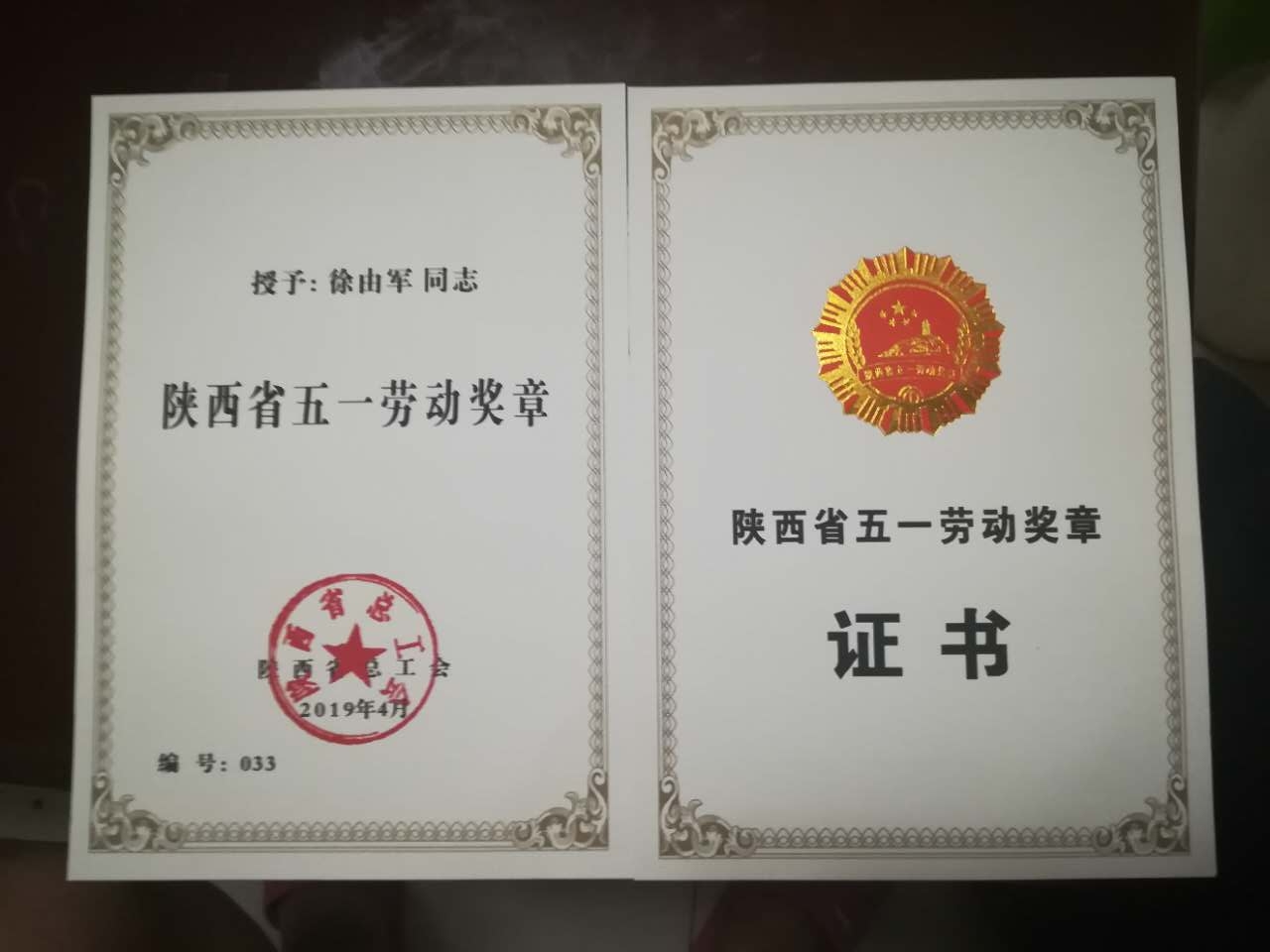7路公交駕駛員徐由軍同志榮獲“陜西省五一勞動獎章”